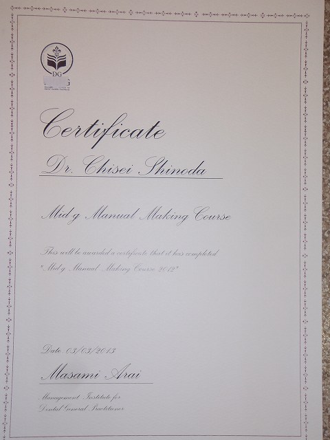 ホーム雑記 歯科医院マネジメントセミナーで優秀賞を獲得しました。 SHARE ツイート シェア はてブ Google+ Pocket LINE 歯科医院スタッフは、患者さとの大切な絆を作るのに重要な役割を担います。この1年間、スタッフが色々困らないような道筋をつくるマネジメントセミナーを受講してきました。そして課題をこなしながら、受講者の3人だけに贈られる優秀賞を獲得することができました。このセミナーを1年間色々支えてくれた先生達・スタッフに感謝!医院内で、患者さんが快適に過ごせるよう・スタッフが困らないように少しでも今を進化させることが恩返しと考えてます。これからもよろしくお願いします!
